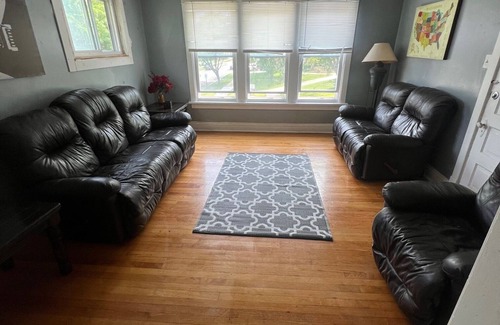 Make yourself at home in this 2-bedroom Blue Island retreat. This charming apartment features 2 full beds, a cozy bathtub, and essential amenities like WiFi and heating. Our superb space is perfect for guests looking for a comfortable stay in the heart of the city. Our place is equipped for both long or short stays to make your holiday one to remember. Available within walking distance are restaurants, transportation, Spirits and Bakery (all within a block from the AirBnb) as well as multiple taverns including a Dispensary (all within 2 blocks)