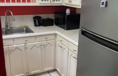 Montego Bay is waiting for you at this 2-bedroom apartment. Just 17 minutes from the airport and and 12 minutes to the hip strip. This charming property features 1 queen bed and 1 full bed, perfect for a peaceful stay. With amenities like WiFi and AC, guests can relax and unwind in this enchanting space. We think our place will help you experience everything Montego Bay has to offer.