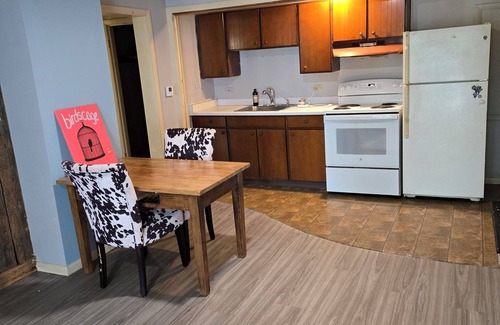 Located in Mansfield, this delightful apartment boasts 2 full beds and 2 twin beds across 2 bedrooms. With WiFi, heating, and AC available, guests can relax in this fabulous space. Unique space above world famous Mothership music venue. 10 minutes to Inkcarceration show. LARGE upstairs covered patio, fire pit, BBQ grill, picnic tables. Perfect space for group to enjoy time in Mansfield at the concert. Lots of free parking, close to restaurants.