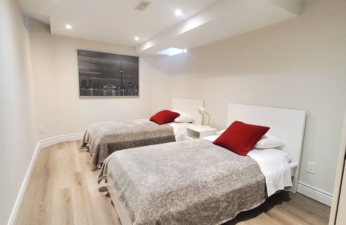 Located in Vaughan, enjoy what this 2-bedroom apartment has to offer. This awesome property features 1 queen bed and 1 twin bed, perfect for a small group of guests. With amenities like AC, WiFi, heating, and a hair dryer, your stay will be comfortable and convenient. The bathroom is equipped with a hair dryer as well. Experience a tranquil and fabulous stay at our apartment. We're happy to assist with any questions while you stay at our apartment.