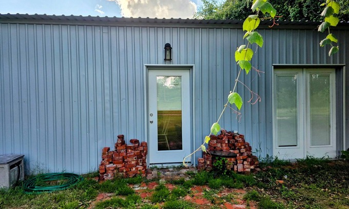 Step back in time with this comfortable barndominium guest house. There is a beautifully landscaped yard to step into, and you can even smoke your own meat on our newly installed BBQ pad. This charmer comes with all new appliances, a huge walk-in tiled shower, large ceiling fans and zoned heating and air conditioning. It features a family art collection and heirloom family photos. The back door faces the main house, but there is also a private front entrance. There is a queen sized bed in both the master and guest room. It will comfortably sleep 5 if someone wants to take the sofa. You will be showering with and drinking natural well water. There is also plenty of floor space for extra blow up beds if you want to bring them (one queen sized air matress will be provided). And, did we mention all of the upscale lighting and large TV's with cable TV. Come stay a while or a month. We can't wait to see you at The Robertson Farm.