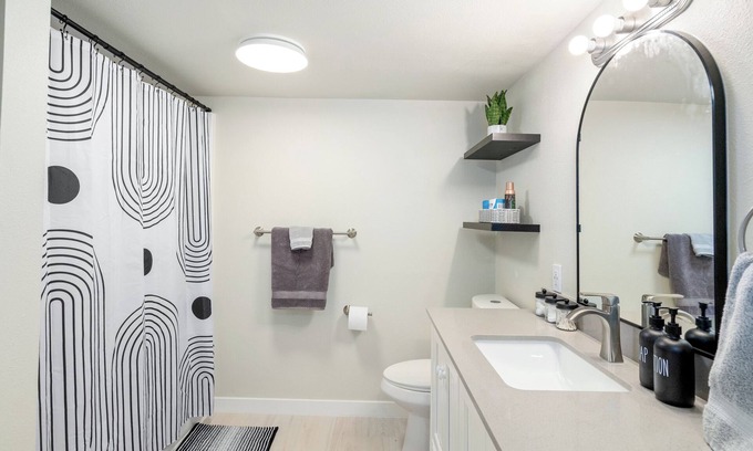 We provide a starter supply of essentials such as toilet paper, paper towels, laundry detergent, shampoo, and dish soap to help you settle in comfortably. However, we do not restock these items or provide consumables like food, condiments, or other perishables. Please plan to purchase or bring any additional supplies you may need for the duration of your stay.