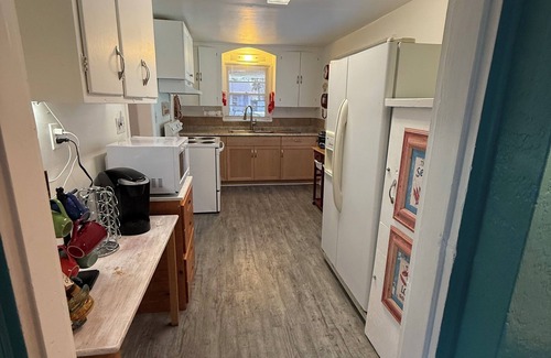 This 2-bedroom bungalow. The cozy space features 1 queen bed and 1 full bed, perfect for a small group of guests. Enjoy the convenience of WiFi, a washing machine, AC, and heating during your stay. The bathroom is equipped with all the essentials you need. We look forward to welcoming you to our place.