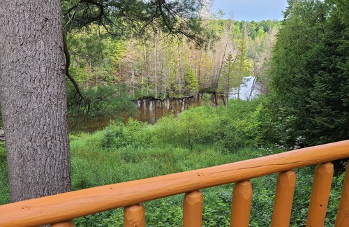 Riverfront property located on 60 acres. Your woodland escape awaits at this enchanting 2-bedroom cabin in Vanderbilt. Inside, guests will find a cozy bunk bed, a luxurious king bed, and a comfortable queen bed. The living room offers an additional twin bed for extra sleeping space. With WiFi, a hair dryer, and AC provided, your stay will be as soothing as the surrounding nature. Step outside to breathe in the peaceful air and explore the beauty of the area. We hope you enjoy what our place and Vanderbilt has to offer.