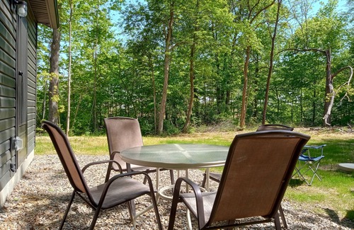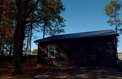 The cabin is tucked into ten acres of private woods, minutes from I-70. There is a large circle driveway with plenty of parking. There is a firepit, with wood provided, outside dining and seating and a grill with plenty of propane.