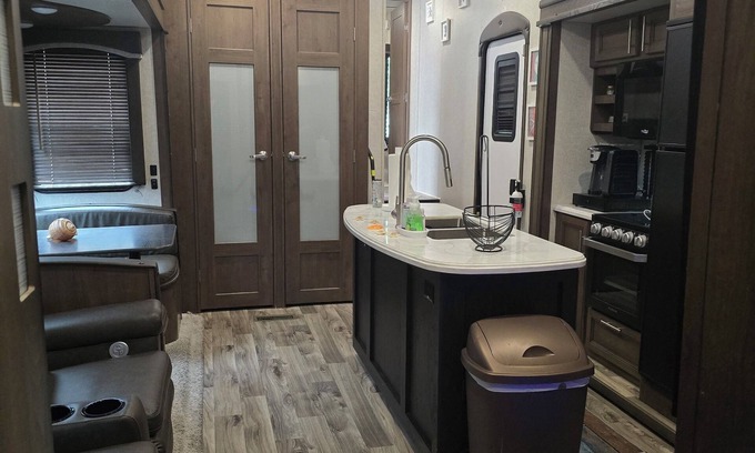 Spacious Rv 2 rooms 1 1/12 bathrooms, wifi connection, TV with all HBO'S outdoor cooking aerea, outdoor sink and fridge, outdoor shower, outdoor TV, outdoor comfortable relaxing area, jacuzzi,kayaks, private parking under roof, boat ramp access free, you can leave your boat up to 23 ft in the marina 48 hours free.Quiet , family oriented , tennis court, beautiful pool ,marina ,food truck, playground, many amenities, 2 minutes away from Publix, Tj-max, Burlington, restaurants.