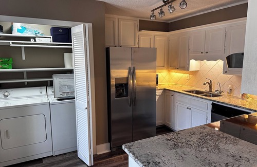 Experience Gulf Shores like a local in this delightful 2-bedroom condo. With 2 king beds and 3 bathrooms equipped with a bidet and shower, this beautiful property offers a cozy living room with a sofa bed and an office space with a bunk bed. Enjoy the convenience of amenities like a washing machine, heating, hair dryer, WiFi, and AC during your stay. Feel secure and comfortable in a gated condo community. This condo was completely renovated in 2024. Enjoy large smart TVs throughout the unit. The lower level offers a large living space with bunk room, closets, half bath, and a garage.