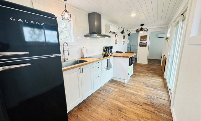 The “Big Bend at Bee Creek Farm”, our newest container home located on 32 tranquil, private acres with a 450 square ft fully fenced yard for your dog(s). Enjoy the quiet nature, starlit skies, farm animals, and hiking trails. Travel to local attractions just 10 minutes into downtown historic Mason. Enjoy the local wineries, shops, Castell General Store, off road parks and many outdoor adventures Mason has to offer!