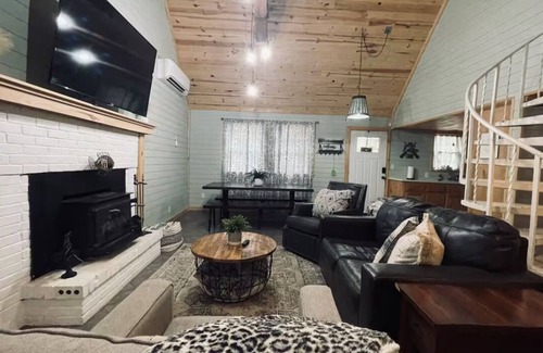 This lovely cabin in Cookson on Lake Tenkiller is a cozy retreat for guests looking to unwind. With 2 bedrooms including a queen bed, bunk bed with full and twin bed, and two bathrooms, there's plenty of space for everyone. The cabin features modern amenities like AC, a hair dryer, and heating, ensuring a comfortable stay. Driveway big enough to accommodate boats, trailers etc for lake fun. Also within 30 minutes of Tahlequah and the Illinois River. This serene getaway has a deck/outdoor patio, and horse shoe pits for outdoor fun.