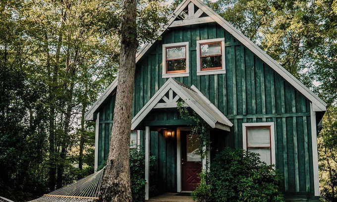 A quaint cottage tucked into the woods is perfectly sized for a couple or 2, a small family, or small group of friends.