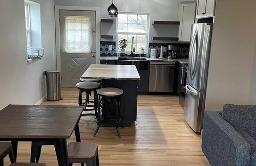 Escape to our farm guesthouse. Nestled in a serene farm setting, our guesthouse offers two bedrooms, each featuring a plush queen-size bed, ensuring a restful night's sleep. The full kitchen is equipped for all your culinary adventures, while the dining area provides a cozy spot to enjoy meals with loved ones. Explore the Village of Aurora and surrounding Finger Lakes region. Whether you're seeking a peaceful retreat or a fun-filled farm experience, our guesthouse is the perfect destination.