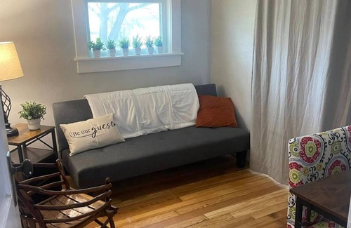 Unwind in Plymouth at this charming cottage. With 2 full Nectar beds in 2 bedrooms (both with smart tvs), a cozy office space with a futon, sunny breakfast nook, comfy living room (with 50” smart tv), stocked kitchen, and a bathroom stocked with essentials and a hairdryer, this retreat is perfect for guests looking for a cozy getaway. Enjoy the convenience of amenities like WiFi, AC, outdoor fire pit, washing machine & dryer during your stay. Breakfast goodies, coffee, tea and snacks are provided. Relax and recharge in this little home away from home. Enjoy all that Plymouth has to offer when you stay at our place.