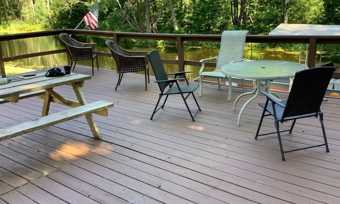 Located in Cadillac, on lake Mitchell, this adorable cottage features 2 bedrooms - one with a queen bed and the other with a bunk bed. With a cozy living room that includes a futon. 3 TV’s one in the main living room, one in the guest bedroom that is a dvd tv, and one in the back living room. This place is perfect for small groups or families. The cottage overlooks the lake Mitchell canal great for fishing and water activities. The Manistee National Forest is across the canal and has easy access to outdoor activities. Step out onto the deck overlooking the canal and enjoy the view and tranquility. Enjoy the convenience of easy access to shops and restaurants in nearby Cadillac. We are pet friendly so bring all your family members with you. We also offer WiFi, a washing machine and dryer. The bathroom offers a refreshing shower to start your day off right. Your getaway awaits at this awesome retreat in Cadillac on lake Mitchell. Feel free to reach out to us during your stay - we're happy to suggest local spots to check out.