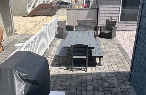 Welcome to this charming cottage in Ocean Beach 2, Lavallette. This 2 cozy bedrooms with a queen bed and a full bed, perfect for a nice night's sleep, full size bathroom with shower, stackable washer/dryer, the living room includes a comfy sofa bed for extra guests, and nice size kitchen with table that fits 4 people includes refrigerator, stove/oven, microwave, coffee maker, cooking utilities, almost everything you expect in a kitchen. Outdoors includes picnic table with umbrella fits 8 people, siting area with 2 club chairs and loveseat, BBQ, outdoor shower, beach chairs, 2 parking spots, and 4 beach badges. Walking distance to beach, bay, play ground, restaurants and shopping center. Enjoy your time in Lavallette at our cottage. (1 week minimum stay)