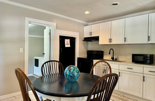 Escape to this enchanting 2-bedroom cottage in Beaufort. With 2 queen beds, a cozy living space, and a fully equipped kitchen, guests can unwind and relax in style. Enjoy the convenience of amenities like WiFi, AC, and a washing machine and dryer. The bathroom comes stocked with a hairdryer for your convenience. Make yourself at home in this adorable retreat, perfect for a memorable getaway. We look forward to hosting you at our place.