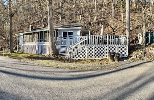 Welcome to this cool fishing cabin in Gate City. With 2 bedrooms including a queen bed, futon, and bunk bed, this terrific retreat is perfect for a small group of guests. Enjoy the fabulous living room with a cozy sofa bed, ideal for relaxing after a day of exploring. The cabin also features heating, AC, a washing machine, and WiFi for your convenience. Experience the outdoors in comfort with Kingsport and Gate City just minutes away