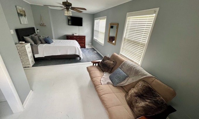Located in Tulsa, this house is a dream. With 2 enchanting bedrooms featuring 2 queen beds and 1 futon, our marvelous property offers a serene escape for guests. The bathroom is well-equipped, and you'll find heating, AC, a washing machine, and WiFi throughout. Plus, there's an additional air mattress for those needing an additional bed. Our place will help you feel at home while you're traveling in Tulsa. Just miles from Downtown Tulsa, Tulsa Hills, Berryhill, Riverside, Jenks, Sapulpa, Midtown.