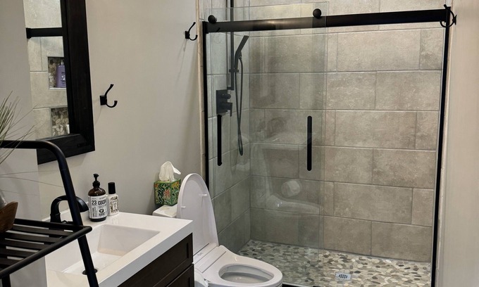 This Fenced 2-bedroom house is perfect for your escape to Indianapolis. With a queen bed & king bed, guests will have a fantastic night's sleep. The property also features 2 bathrooms with a bidet and shower for added convenience. In the living room, there's a cozy sofa bed & twin bed for extra sleeping space. Enjoy the serene atmosphere and modern amenities like WiFi, AC, and a washer & dryer. We'll be available to answer any questions while you stay at our place.