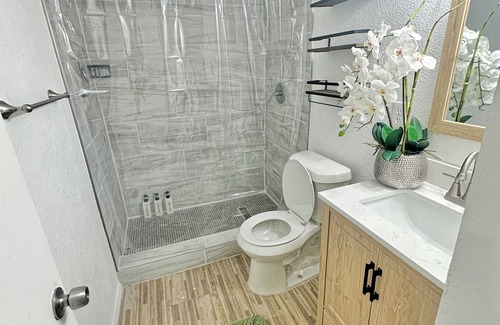 Enjoy a soothing stay at this 2-bedroom house in The Colony. The bedrooms feature 2 queen beds, perfect for a good night's sleep. The bathroom is equipped with a shower and a hairdryer for your convenience. This quaint property offers WiFi, a washing machine, AC, and heating. Feel free to reach out to us during your stay -