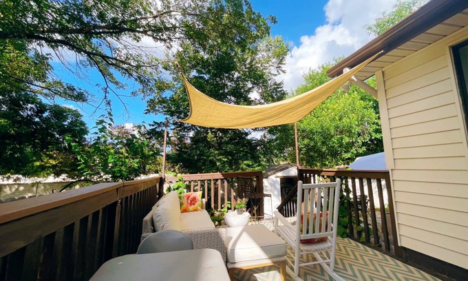 Discover this lovely 2-bedroom gem in Austin. This awesome house features 2 queen beds, 1 sofa bed, 2 bathrooms with a shower and bathtub, heating, AC, WiFi, a washing machine, an iron, and a hair dryer. Our quaint place will help you feel at home while you're traveling in Austin.