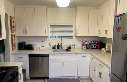 Unwind in Yucaipa at this charming house. With 2 cozy bedrooms featuring a queen bed and a twin bed, guests can relax in comfort. Enjoy the convenience of amenities like heating, AC, WiFi, and a washer and drying machine. The bathroom includes a shower and bathtub and a hair dryer for added convenience. Feel at home in this pleasant retreat and make the most of your stay. Feel free to reach out to us during your stay - we're happy to suggest local spots to check out.