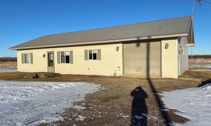 Welcome to this charming house in Baudette. This fabulous property features 2 tranquil bedrooms with 2 queen beds, a phenomenal bathroom with a shower, and an additional living space with 1 queen bed and 1 twin bed. Guests can enjoy the AC, washing machine, and heating during their stay. There is a spacious back deck out looking the property to the east. Our place is equipped for both long or short stays to make your holiday one to remember. This property is located on five acres and is one half mile from Bostic Bay and area resorts.