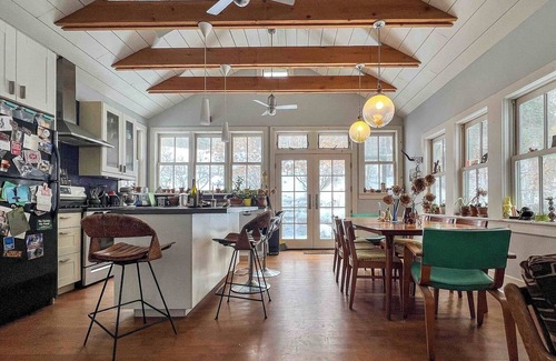 The home is rustic modern, it’s not a hotel or a new development. There’s central heating and a wood stove to supplement the heat but it can be chilly, in winter we bundle up, wear sweaters, slippers, etc. There is a washing machine and dryer in the basement. There is no TV, but we have WiFi for watching movies on your computer. We are dog friendly and welcome non-destructive pets!