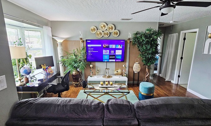 Charming 2-bedroom Private Space with WiFi, AC in welcoming Palm Bay, FL is located in Interchange Square. Charming 2-bedroom Private Space with WiFi, AC in welcoming Palm Bay, FL provides accommodation, featuring Air Conditioner, Pet Friendly, Security/Safety, among other amenities. This House features Air Conditioner, Pet Friendly, Security/Safety, to make your stay a comfortable one.