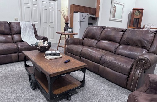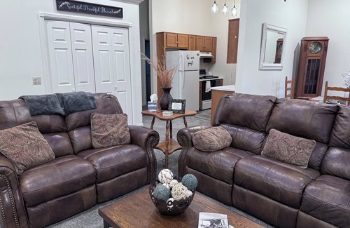 Located within walking distance of downtown Cave City, this townhome is a dream. With 2 bedrooms, 2 full baths, fully stocked kitchen, washer and dyer, guests will feel right at home. We have the children covered as well with a high char, pack-n-play and other essentials. Experience the magic of Mammoth Cave, Dinosaur World or any of the other fabulous attractions near by at our townhome. Portable Handicap ramp for threahold available on site if needed.