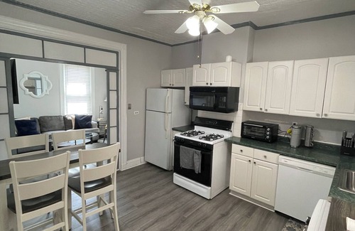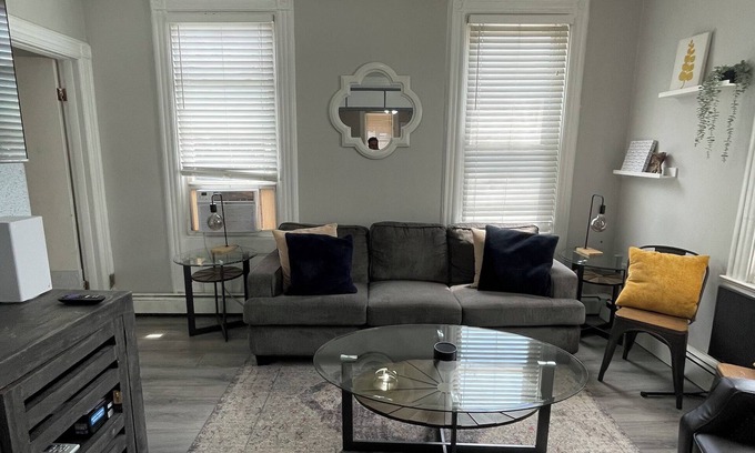 Enjoy this centrally-located and newly renovated 2-bedroom railroad style apartment, just minutes away from NYC! You will be within walking distance to the stunning Hoboken Waterfront and plenty of Bars, restaurants, parks and a municipal parking garage. The apartment has everything you need--a fully equipped kitchen, 2 smart TVs, Wi-Fi, fresh towels/linens and everyday necessities. This 2BR apartment is located in a charming, Historic building. While we maintain it clean and comfortable, the building’s age is part of its character—perfect for those who love a little vintage charm. At one point, this building served as efficiency rentals by the room. Since then, each floor has been renovated into complete apartments. Please note the quirks that come with an older space.