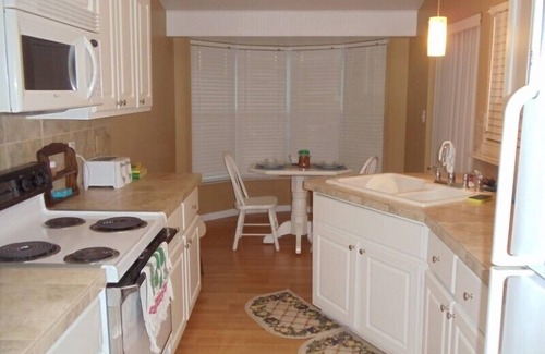 2 BR 2 BATH WITH ATTACHED 1 CAR GARAGE, only 0.9 mile down the street from the Port Charlotte Beach Complex on Alligator Bay, (I’ve included several pics of the complex and things to do there, including a large, beautiful public pool) and just 3 milesBEAUTIFUL LAMINATE WOOD FLOORS THRUOUT EXCEPT FOR 2ND BEDROOM WHICH IS TERAZZO FLOORING, GUEST BATH W/ SHOWER & TUB, LIVING & DINING AREAS THAT ALLOW FOR FAMILY GATHERINGS & EASE OF CONVERSATION, KITCHEN RENOVATED W/TILE BACKSPLASH,TILED COUNTERS,NEWER RAISED CABINETS & WAINSCOTING FOR ADDED CHARM, AN ENCHANTING EAT-IN-BREAKFAST NOOK AREA OVERLOOKING BACKYARD THRU TUCKED OUT WINDOWS;APPLIANCES INCLUDE REFRIGERATOR, MICROWAVE,STOVE/OVEN ,WASHER,DRYER,COOKWARE,SILVERWARE,UTENSILS,COFFEEMAKER,TOASTER,DISHES,GLASSES, OUTDOOR GAS GRILL, TOWELS,BEDDING, BLANKETS;BEACH TOWELS, COOLER, TENNIS RACKETS, BEACH CHAIRS FOR YOUR USE AT PORT CHARLOTTE BEACH; POCKET SLIDERS FROM MASTER, BEDROOM, KITCHEN, LIVING ROOM WITH TWO RECLINERS,COUCH,TV, GIVE ACCESS TO THE ADJOINING PATIO/LANAI W/PLANKED FLOORING & COOL BREEZES WITH ACCESS TO LARGE BACKYARD; SPACIOUS & COMFY MASTER BEDROOM WITH HUGE WALK-IN CLOSET,TV, AND KING-SIZED BED; GUEST BR HAS QUEEN-SIZED BED, LARGE CLOSET, TV; YOUTUBE FOR TV VIEWING; CENTRAL AIR/HEAT WITH CEILING FANS THRUOUT; EVERYTHING YOU NEED FOR A RELAXING GETAWAY! And just 3 miles from the new ALLEGIENT SUNSEEKER RESORT with its 20 different dining experiences to enjoy.