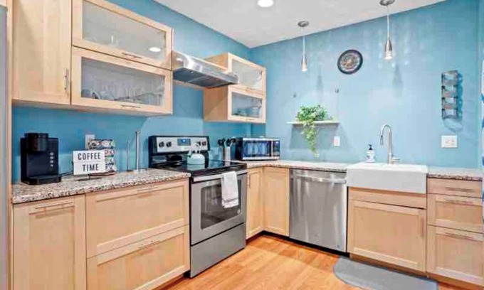 Make yourself at home in this cozy 2-bedroom Lambertville retreat. This row home features 2 queen beds, a living room with a sofa bed, workspace, full kitchen and back patio. Enjoy the quiet residential street that’s just a stones throw from both the center of town and a walk along the canal. Go explore the restaurants and shops in town OR stay in your PJs with modern amenities like WiFi, smart TV, central AC/heating and electric fireplace. Our place is equipped for both long or short stays to make your holiday one to remember.