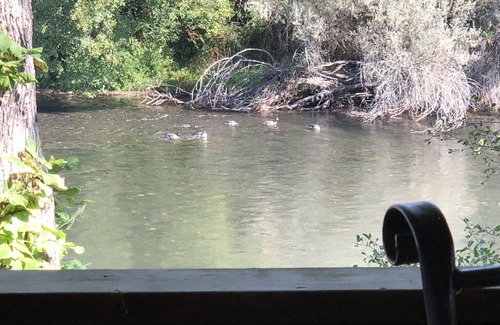 This is our home away from home. You will find so many ways to enjoy your time here on the river. We love to sit on the covered deck and watch the river flowing by just a few feet away. Ducks, herons and geese are regular visitors and occasionally we see an eagle diving down to catch its next meal! It’s the perfect location to use as a base for kayaking, fishing or hiking in the beautiful Rogue River valley, and we’re just a short drive from the scenic town of Jacksonville, the Applegate wine trail, Ashland, and the city of Grants Pass with its historic downtown.