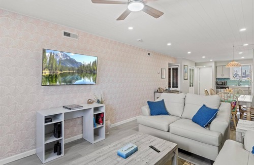 This lovely 3rd floor apartment offers superb comfort for guests with 2 bedrooms - one with a king bed and the other with a queen bed, large closets, dressers. You'll find 2 bathrooms, one equipped with a hair dryer. The additional living room space includes a cozy sofa bed for extra relaxation. Full modern kitchen, three TVs, 1gig WiFi, working desk, onsite covered free parking (value $50/day) , elevator, 4 beach access passes (value $300) , indoor seasonal swimming pool, large private balcony.