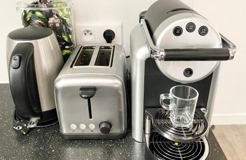 Located on the ground floor of an inner courtyard, this apartment was refurbished and equipped with comfortable furniture (thick mattresses including for the sofa bed that turns into a queen bed 160x200cm), large rain showers, fast optical fiber 1 GB wifi, and everything needed to cook. A professional Nespresso coffee machine with complimentary pods is ready to start each day off right ! For your entertainment, you will find a Marshall bluetooth speaker, as well as a smartTV with 180 channels including a complimentary package of 10 sports channels. And access to Netflix, Prime video, Deezer, Spotify (subscription required). International adapters and USB chargers are available in each room. Please note that there are 2 bathrooms in the apartment (with large rain showers, hair & body washing gel dispensers, sinks, hair dryers, towel racks...), with 1 toilet. The master bedroom is accessible through little stairs, in the basement. It is characteristic of historical parisian buildings with its vaulted roof and stone wall. This large bedroom has a queen size bed (160x200cm), a workplace, and several wardrobes. The little patio with plants in the common courtyard is perfect for smokers (as smoking is strictly forbidden inside the apartment).