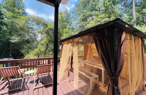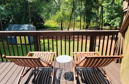 Welcome to The Pond House Retreat nestled in a beautiful wooded part of Chattahoochee Hills! The house is surrounded by 5+ acres of wood. Enjoy coffee or breakfast off the back deck overlooking our serene pond or on the front porch swing. Our place is meant to be a quiet retreat from all the hustle and bustle.