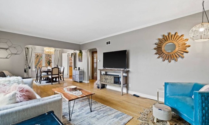Relax at this peaceful home, tastefully decorated in a fun boho chic style! Just a short drive to downtown and area attractions. Enjoy the quiet tree-lined neighborhood. With 3 levels, 3 bedrooms, 1.5 bathrooms & bonus space in the lower level, this is the perfect getaway with enough room for everyone! Kitchen offers plenty of counter space & is well stocked. A fenced in backyard, patio and plenty of parking (garage & pad) make this an easy place to stay.