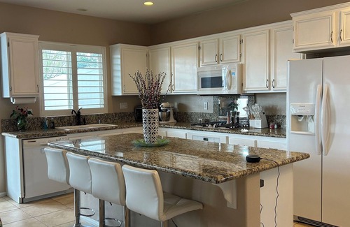 Charming 3-bedrm house 2 1/2 bath 2 car garage in Desert gated community has 3 Bedrooms , 2 Bathrooms, and max occupancy of 6 people. The minimum rental for this property is 1 nights, but this can change depending on the season you plan on staying. Previous guests have rated it 2, and VRBO labeled it a top-rated House because of the excellent services rendered by the owner or manager of this House, and has consistently provided great experiences for their guests. Most families or guests that use it recommend it to their friends and some of them are repeat guests. House has a friendly neighborhood, and the Desert Hot Springs has interesting places to visit. If you want to learn more about the House in Desert Hot Springs, such as places to visit and things to do nearby, you can check below to learn more.