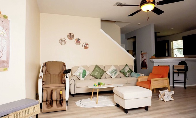 Welcome to your relaxing, memorable gateway located in Kyle, TX. This 3-bedroom, 6 beds. 2.5-bathroom house is designed to provide you with the ultimate blend of comfort and convenience, making your stay truly exceptional. Massage Chair & TVs are in the living & game room. Every room has work station (Computer table & chair). Pool access. Grill and dining set in the backyard. Close by convenience stores. Great and peaceful neighborhood.