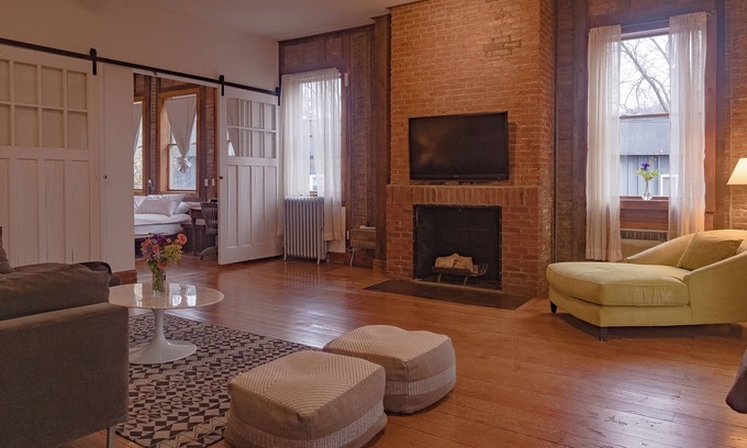 First Floor and half of the Basement in a recently-renovated 1813 home. 3000 square feet, with a chef's kitchen featuring Sub-Zero, Wolf, and Miele appliances, a large dining and living space, and a large outdoor space.
