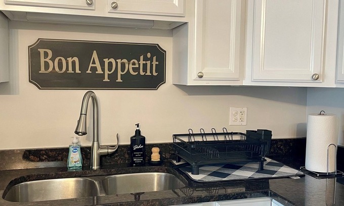 Escape to this marvelous apartment in picturesque Elmhurst. With 3 queen beds, a cozy bathtub, and a jetted bathtub, guests will feel right at home. Enjoy the convenience of WiFi, a 65” TV, and full kitchen during your stay. Come unwind and enjoy your stay!