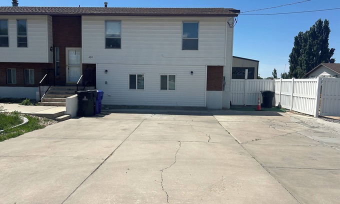 Your family will be close to everything when you stay at this centrally-located place. Fully renovated/Syracuse Apartment corner with Clinic, near hospitals, Schools, a block away from 193 Hwy which merge with Interstate 15, close to Antelope Island, Smith’s/Walmart/Walgreens, Restaurants, Hill AFB, less than an hour from Park City. It’s 3 bedrooms two queens beds and two full beds; 2 full baths with tub, and hair dryer, Washer/dryer, new heating- a/c, Wi-Fi available. The apart. has a cover patio w/ great view backyard, tables/ chairs and gas grill. Free Parking, No smoking or Vaping.
