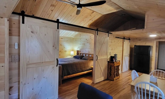 Your adventure begins at this welcoming 3-bedroom cabin. Inside, guests will find 1 queen bed, 1 full bed, and 1 bunk bed (full on bottom/twin on top), perfect for a wonderful stay. With amenities like WiFi and AC, this cabin offers an excellent retreat. Forget your worries in this spacious and serene cabin in the Poconos! Located in a private community in Promised Land State Park, this cabin has been fully remodeled for 2025. Enjoy fishing, hiking, kayaking,swimming, skiing, bicycling, hunting and so much more all within the park and surrounding Delaware State Forest. Only 20 minutes from Lake Wallenpaupack or 10 minutes to Fairview Lake. Many wineries, waterparks and outdoor activities within a short drive. Why stay at The Rex for $400/night for a 1 bed cabin! Linens are provided but towels are not.