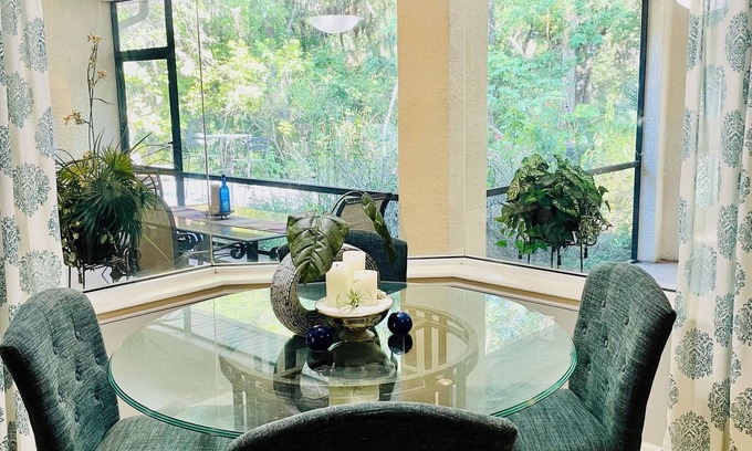 This 3-bedroom chalet is perfect for your escape close to St Pete and Tampa. With 1 king bed and 2 twin beds, it offers a wonderful and pleasant stay for guests. Take a break and unwind at this modern day eco friendly bungalow, location on a 3 acres wooded, peaceful oasis.