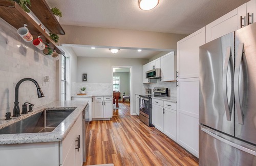 All the comfort, amenities, and location you'd need in a getaway for game weekends, family visits, or extended stays in Tallahassee. Just-updated bathrooms and kitchen - vanities, granite counters, cabinetry, flooring, fixtures all new! Massive deck overlooks large, fenced yard w/ fire pit; great for pets! Living room has 55" TV and large couch (coverts to queen bed). Game room w/ foosball table and desk space. Complimentary coffee bar, stocked bathrooms, and fresh linens await your arrival!