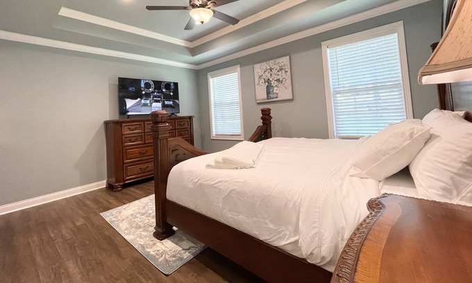 Forget your worries in this spacious, peaceful, and cozy place. Either visiting the famous Mammoth Cave and Corvette Museum, exploring the city of Bowling Green, or just relaxing with family and friends around our private fire pit under a 100-year-old pecan tree, you will surely have fond memories to take home. Our home is in the heart of it all, 1.6 miles to Corvette Museum, 5.2 miles to downtown BG and WKU, 6.3 miles to Beech Bend water park, etc.