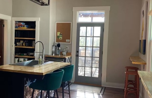 Get ready to relax in this charming 3-bedroom house in Midway. This gorgeous property features a first floor master with king bed and walk in shower, and 2 additional bedrooms upstairs-one with a queen sized bed, and the second with a king sized bed plus a semi private alcove with two twin beds. With three bathrooms equipped with hair dryers and showers, guests can unwind in comfort. Our second living room has a pull out couch for extra sleeping space; this room can be completely closed off to act as a 4th bedroom. Relax with a cool drink on our spacious screened in porch overlooking the garden and salt water pool or take a short walk to Main St where you will find several great restaurants, bars, and antique shops. We're happy to answer any questions you may have about the home or the area!