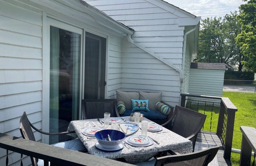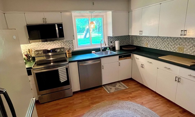 Nestled in the heart of Bristol's Historic 'Commons Neighborhood', this cozy 1200 sq.ft. ranch home blends vintage New England charm with modern amenities. Perfectly located a short 10 minute walk from historic downtown Bristol, you are within 1-8 blocks of ALL Bristol offers. Hop in your car and you are a short 3 minutes from Mt. Hope Farm, 6 minutes from RWU, 6 minutes from Colt State Park, 8 minutes from the Blithewold Manor and 4 minutes from Linden Place. Conveniently between Newport and Providence, whether you're planning a peaceful seaside retreat, family vacation, or friends getaway (weddings/graduations/reunions) this home is the perfect setting for creating memorable moments! Get ready to relax in this charming 3-bedroom house in Bristol. With 2 queen bedrooms and 1 king bedroom with private entrance and coffee bar, this terrific property offers a cozy living room with an additional queen pull-out sofa bed. Enjoy the convenience of a fully stocked kitchen for all your cooking needs, a bathtub, toiletries, hair dryer, WiFi, and more during your stay. The large fenced in corner yard offers a fun haven for outdoor games and cooking out on the BBQ/grill and enjoying your meals al fresco on the back deck. We look forward to welcoming you to our home, The Bristolian House.