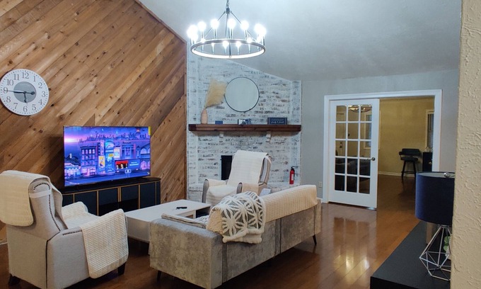 Consider this house your home away from home while you visit Beaumont. This delightful property features 3 queen beds in 3 bedrooms, along with 2 bathrooms equipped with a shower and hair dryer. The living room offers additional sleeping space with 1 sofa bed and 2 twin beds. Enjoy the serene atmosphere and modern amenities like AC, heating, iron, and more. Feel free to reach out to us during your stay - we're happy to suggest local spots to check out.