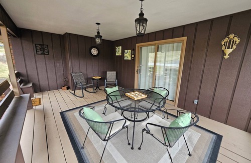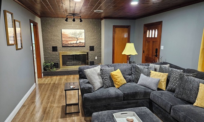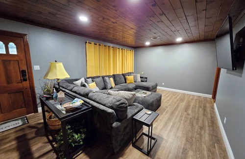 Nestled in Bristol, this delightful house offers 3 cozy bedrooms - 3 queen beds. With 2 bathrooms equipped with a shower and bathtub, guests can relax and unwind. The downstairs living room features 2 comfy sofa beds (1 queen & 1 full) for additional sleeping space. Enjoy the peaceful surroundings and take advantage of amenities like the complimentary coffee bar, covered front & back porch areas, arcade games, and a washer & dryer. Fall in love with Bristol and enjoy the magic it has to offer.